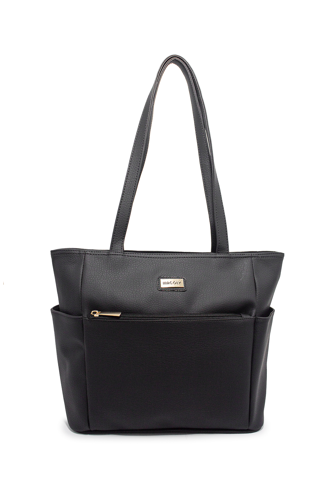 Bolso de hombro grande. Está fabricado en lona PVC, un material sintético de alta gama que destaca por ser resistente, fácil de limpiar y por mantener la estructura del bolso impecable a través del tiempo.