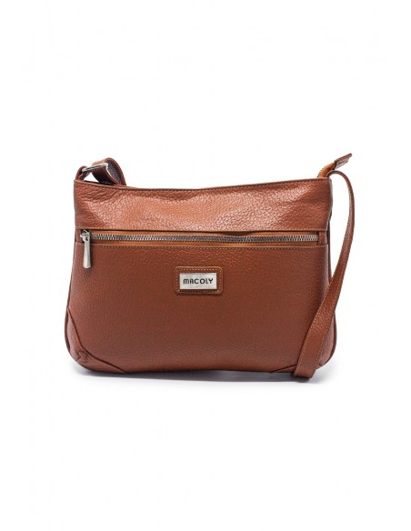 Bolso Manos Libres macoly, elaborado en cuero 100% vacuno, diseño casual con textura grabada. Detalles alusivos a la marca y finas costuras visibles. Tiene compartimiento interno, bolsillo interno con cremallera, bolsillo frontal y posterior con cremallera y correa manos libres.
