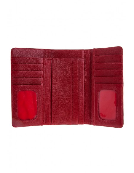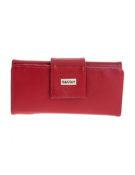 Billetera negra MACOLY. Elaborado en cuero vacuno, diseño casual con textura grabada o lisa. Detalles alusivos a la marca y finas costuras visibles. Con varios compartimientos para tarjetas y/o documentos, bolsillos internos y bolsillo exterior con cremallera y tapa con broche.