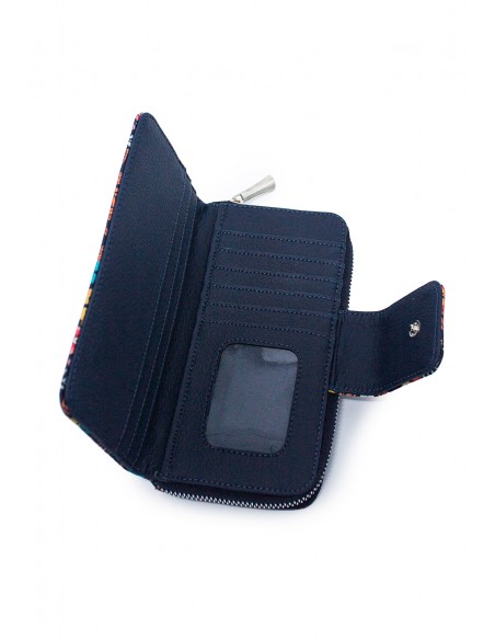 Billetera MACOLY. elaborada en material sintético, diseño casual con textura de reptil. Detalles alusivos a la marca y finas costuras visibles. compartimientos internos para tarjetas y/o documentos, bolsillo monedero con cremallera y tapa con broche.