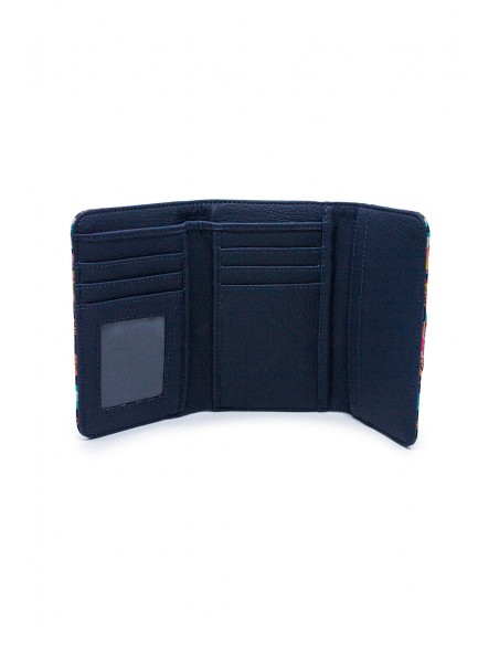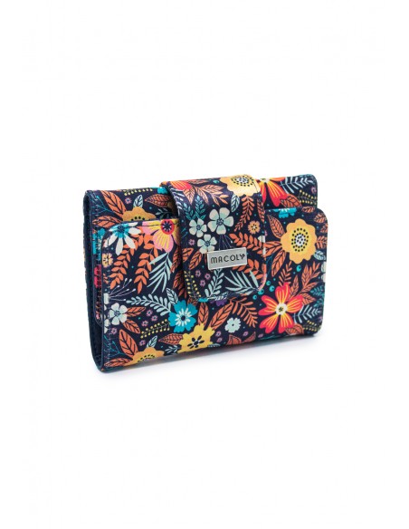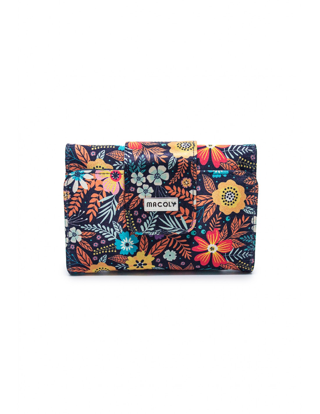 Billetera MACOLY. elaborada en material sintético, diseño casual con textura lisa. Detalles alusivos a la marca y finas costuras visibles. compartimientos internos para tarjetas y/o documentos, bolsillo monedero interno con cremallera y tapa con broche.