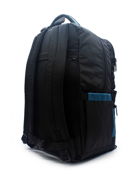 Morral 295 MACOLY, elaborado en lona semi impermeable, diseño casual. Detalles alusivos a la marca y finas costuras visibles. Cuenta con un compartimiento amplio con espacio para portatil (cierre con velcro), y bolsillo interno con cremallera. En la parte frontal cuenta con un bolsillo superior y un bolsillo inferior. En la parte posterior tiene bolsillo cubierto con cremallera. Tiene bolsillos laterales en lona. Cuenta con espaldar acolchado y cargaderas de moraal ajustables con chapa plástica.