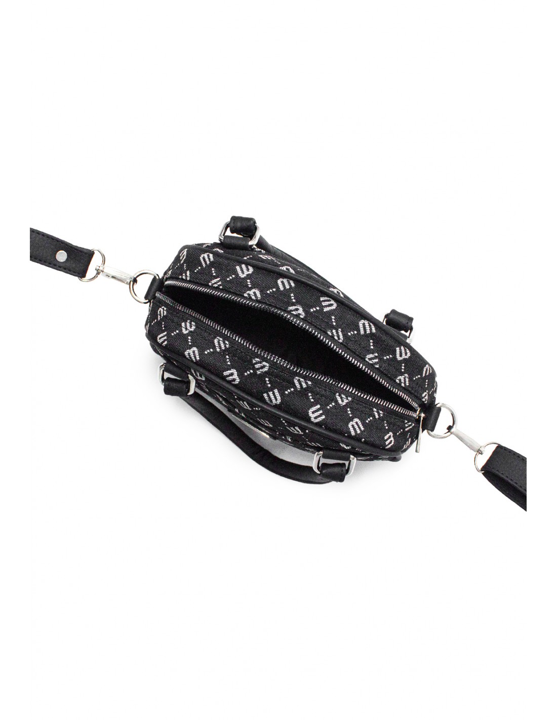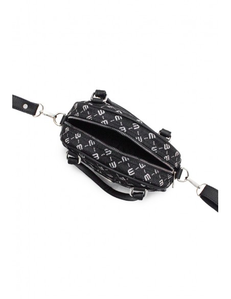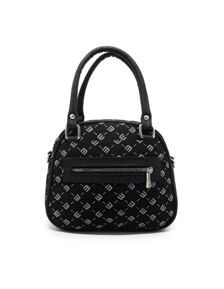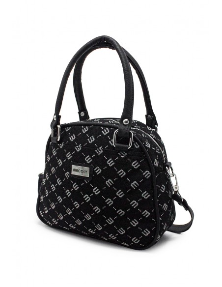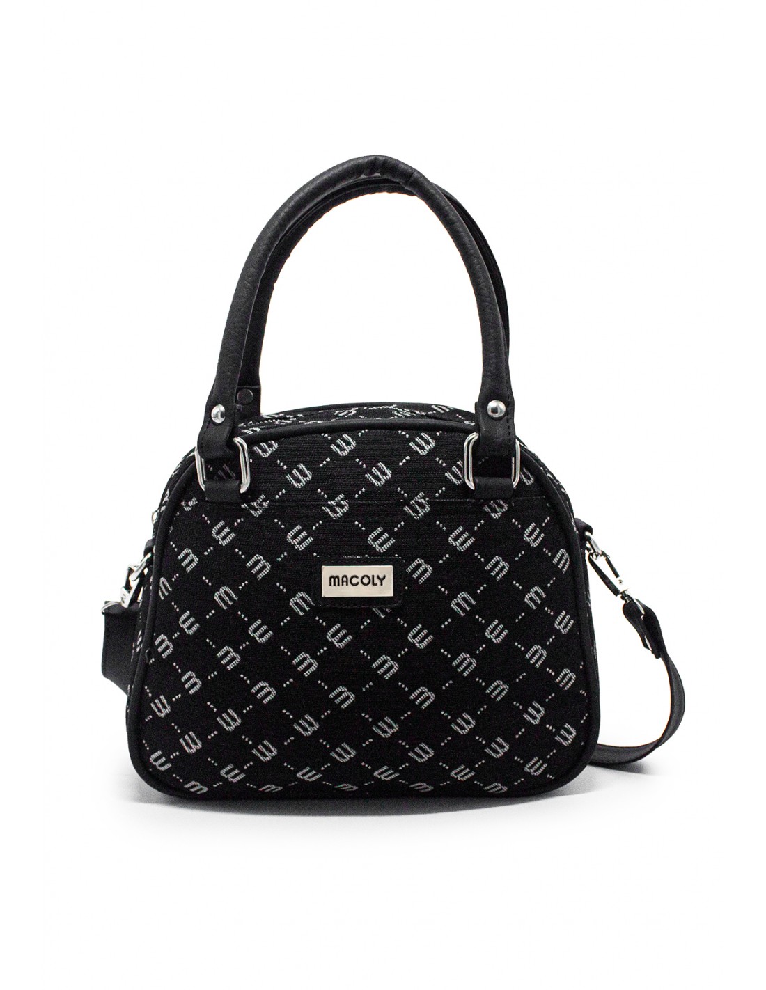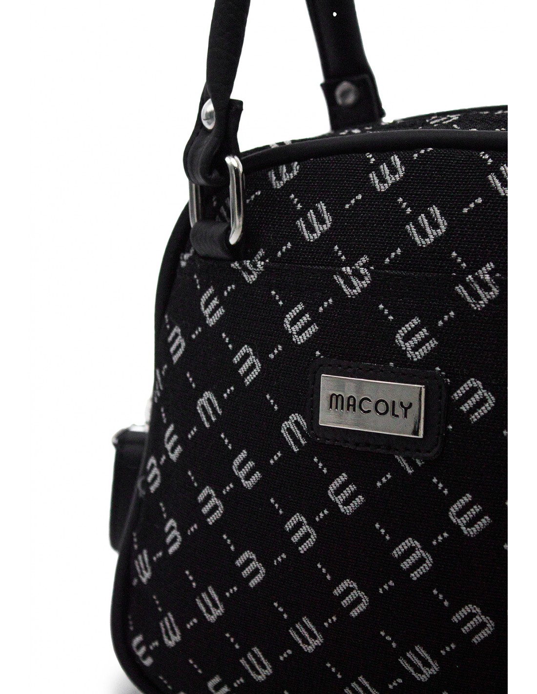 Cartera Manos Libres Macoly, elaborado en sintético PVC, diseño casual con textura con acolchado de rayas. Detalles alusivos a la marca y finas costuras visibles. Tiene un compartimiento con solapa interna y cremallera interna, tiene bolsillo posterior con cremallera, manijas, correa manos libres ajustable y charm naranja en forma de flor removible.