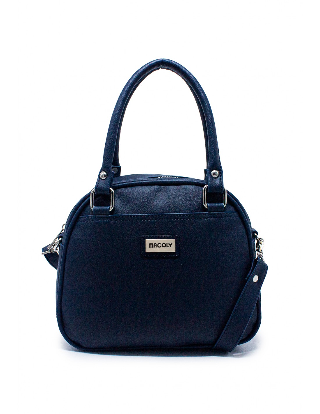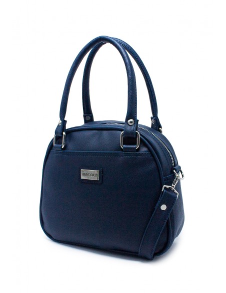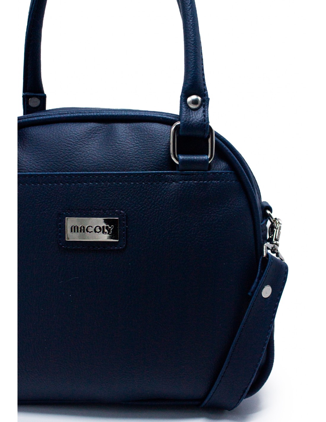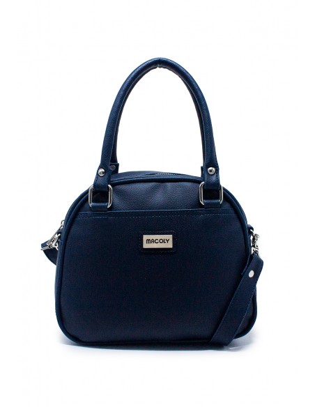 Cartera Manos Libres Macoly, elaborado en sintético PVC, diseño casual con textura con acolchado de rayas. Detalles alusivos a la marca y finas costuras visibles. Tiene un compartimiento con solapa interna y cremallera interna, tiene bolsillo posterior con cremallera, manijas, correa manos libres ajustable y charm naranja en forma de flor removible.