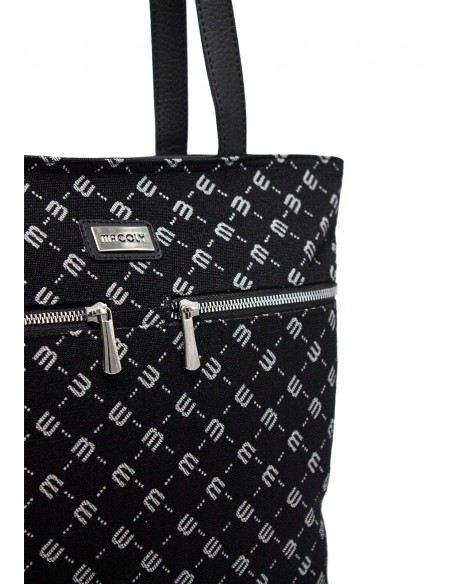 Bolso de hombro manos libres Macoly, elaborado en sintético PVC, diseño casual con textura acolchada. Detalles alusivos a la marca y finas costuras visibles. Tiene un compartimiento amplio con cremallera interna y solapa interna. tiene bolsillo posterior con cremallera,tiene dos bolsillos frontales con cremallera y manijas largas de hombro.