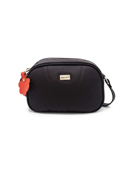 Bolso manos libres Macoly. Elaborado en lona PVC, diseño casual con textura grabada. Detalles alusivos a la marca y finas costuras visibles. Tiene compartimiento amplio con bolsillo con cremallera. Tiene bolsillo posterior con cremallera. Cuenta con correa manos libres graduable.