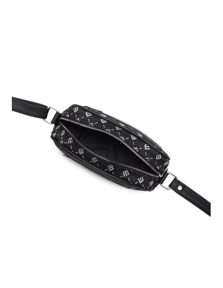 Bolso manos libres Macoly. Elaborado en lona PVC, diseño casual con textura grabada. Detalles alusivos a la marca y finas costuras visibles. Tiene compartimiento amplio con bolsillo con cremallera. Tiene bolsillo posterior con cremallera. Cuenta con correa manos libres graduable.