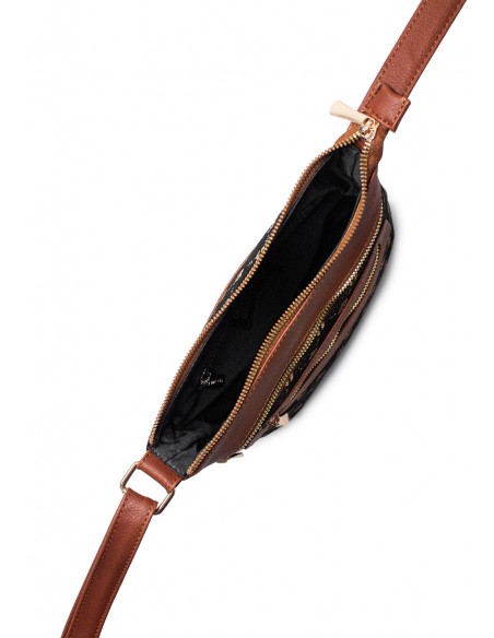 Bolso Manos Libres Macoly, elaborado en sintético PVC, diseño casual en textura grabada. Detalles alusivos a la marca y finas costuras visibles. Tiene compartimiento interno con cremallera, 2 bolsillos externos con cremallera, bolsillo posterior y correa manos libres.