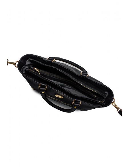 Bolso de hombro manos libres MACOLY, elaborado en sintético PVC, diseño casual con textura. Detalles alusivos a la marca y finas costuras visibles. Tiene compartimiento amplio con división, bolsillo interno con cremallera y organizador interno. Tiene bolsillo frontal y posterior con cremallera. Tiene manijjas de hombro y correa manos libres ajustable.