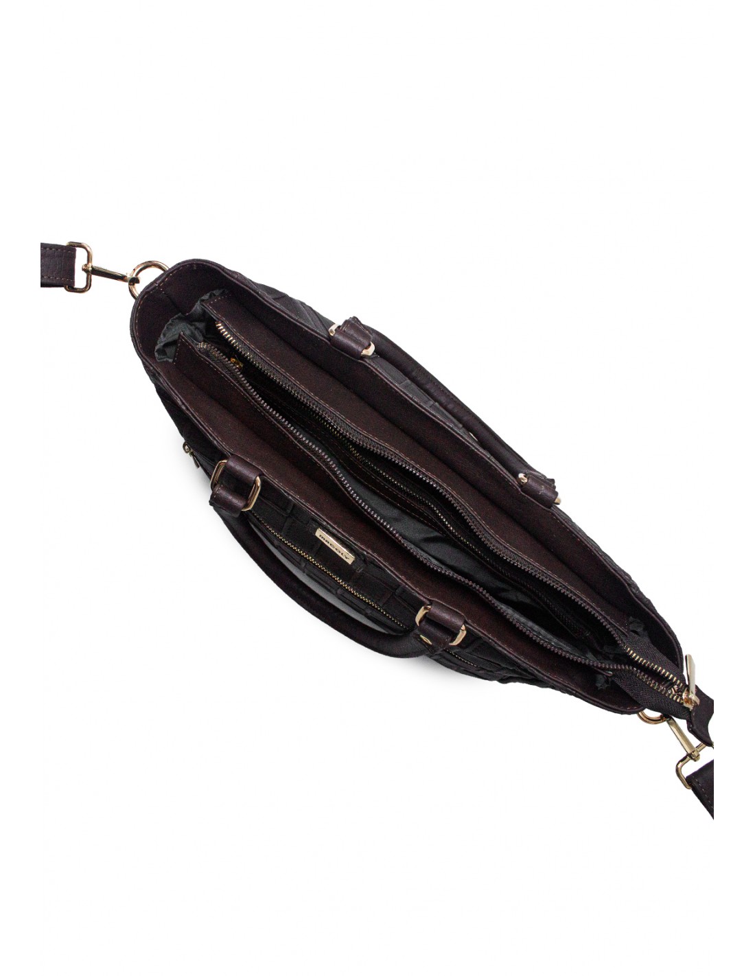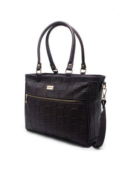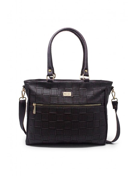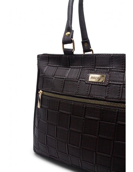 Bolso de hombro manos libres MACOLY, elaborado en sintético PVC, diseño casual con textura. Detalles alusivos a la marca y finas costuras visibles. Tiene compartimiento amplio con división, bolsillo interno con cremallera y organizador interno. Tiene bolsillo frontal y posterior con cremallera. Tiene manijjas de hombro y correa manos libres ajustable.