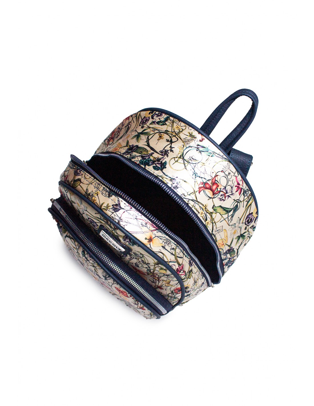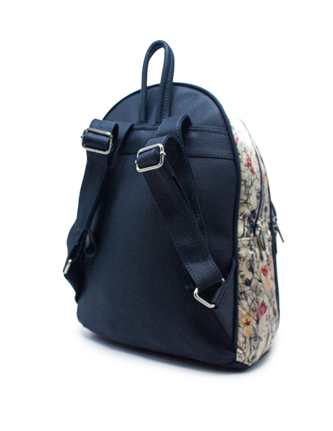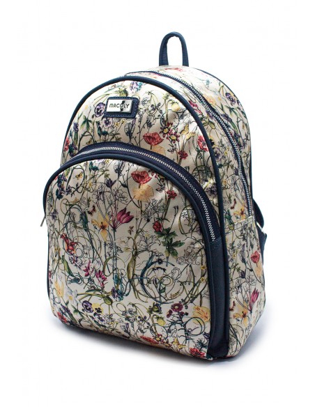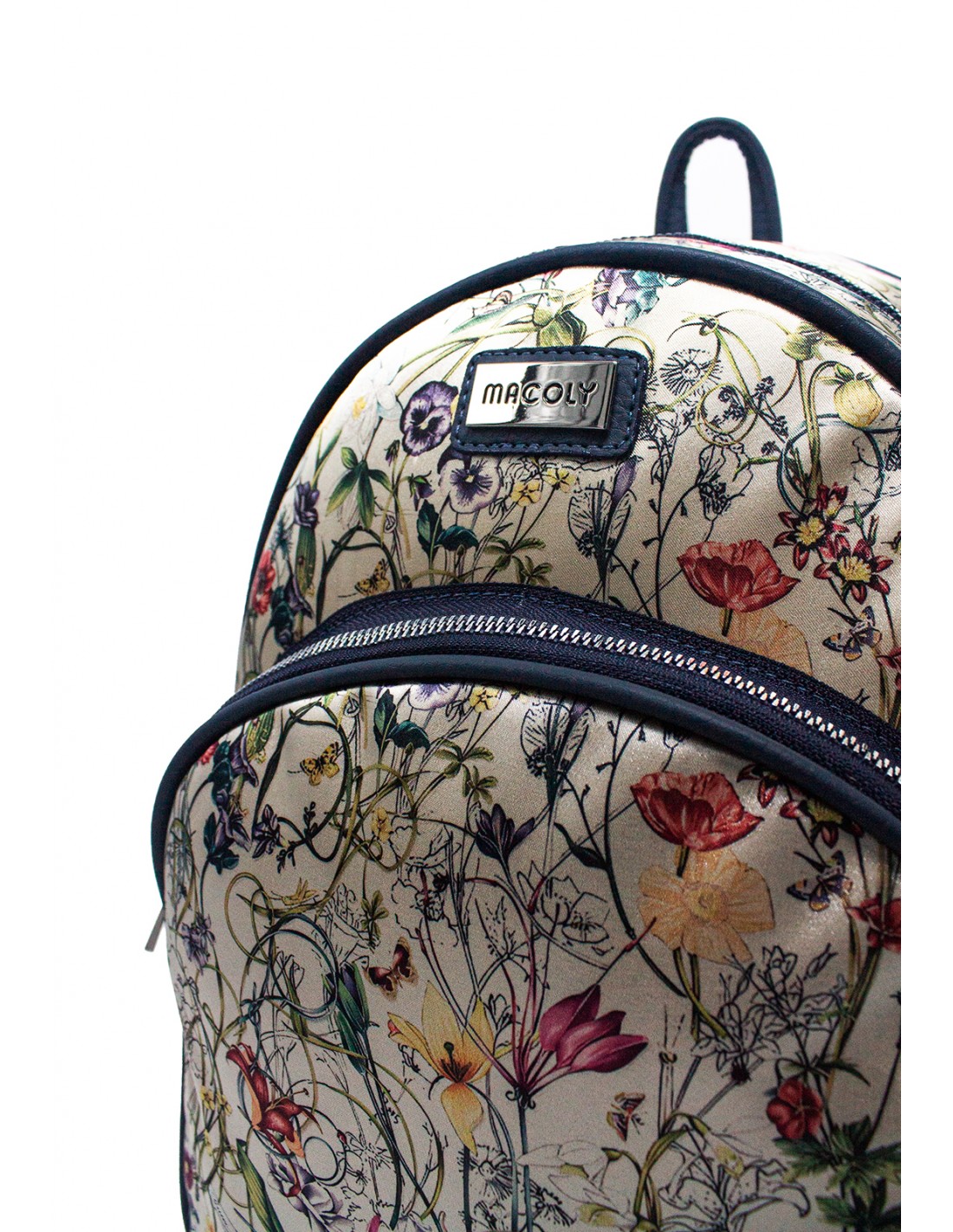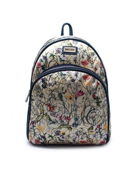 Morral mediano negro MACOLY, elaborado en sintético (pvc), diseño casual con textura. Detalles alusivos a la marca y finas costuras visibles. Tiene compartimiento amplio, bolsillo frontal con cierre, organizadores, cierre de cremallera y cargaderas de morral ajustables.