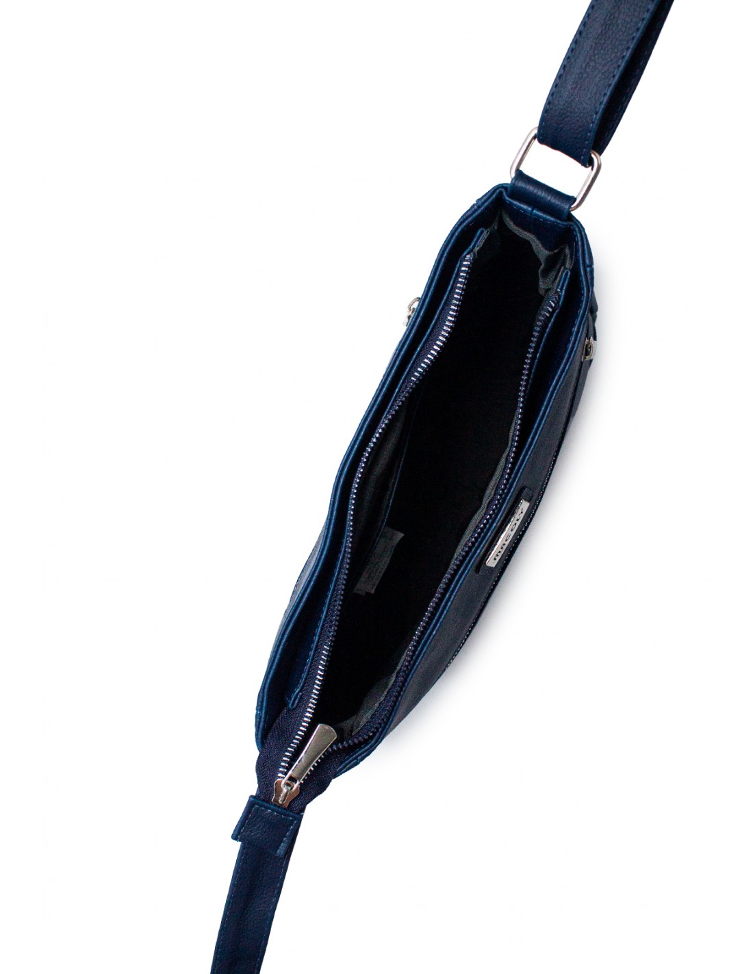 Bolso Manos Libres 792, elaborado en sintético PVC, diseño casual con textura acolchada. Detalles alusivos a la marca y finas costuras visibles. Tiene compartimiento, organizadores internos, bolsillo frontal y bolsillo posterior con cremallera, cierre de cremallera y correa manos libres.