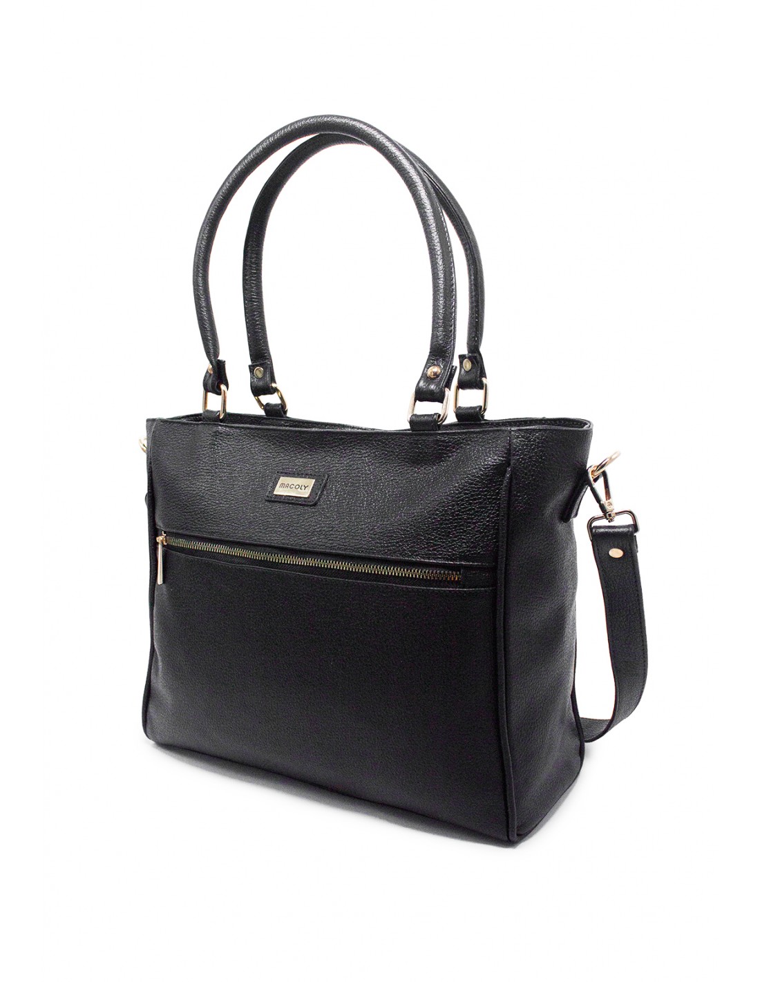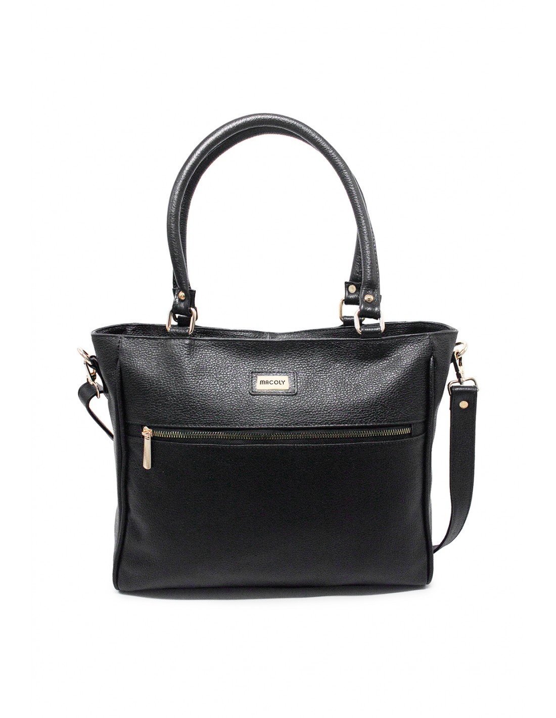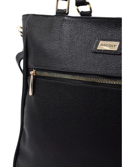 Bolso de hombro MACOLY, Está elaborado en 100% cuero. diseño casual con textura granulada. Detalles alusivos a la marca y finas costuras visibles. Tiene compartimiento amplio con doble división, con solapa y cremallera interna. Tiene bolsillo frontal con cremallera, tiene bolsillo posterior con cremallera, cierre de cremallera y correas de hombro. Tiene herrajes en color dorado.