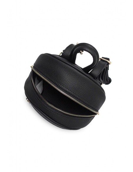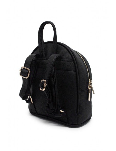 Morral mini MACOLY, elaborado en sintético (pvc), diseño casual con textura grabada con textura estampada. Detalles alusivos a la marca y finas costuras visibles. Tiene compartimiento, bolsillo interno, bolsillo frontal con cremallera, manija de mano y cargaderas de morral ajustables.