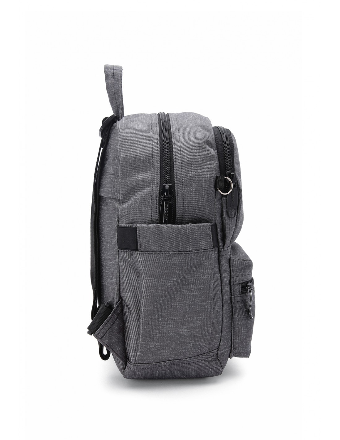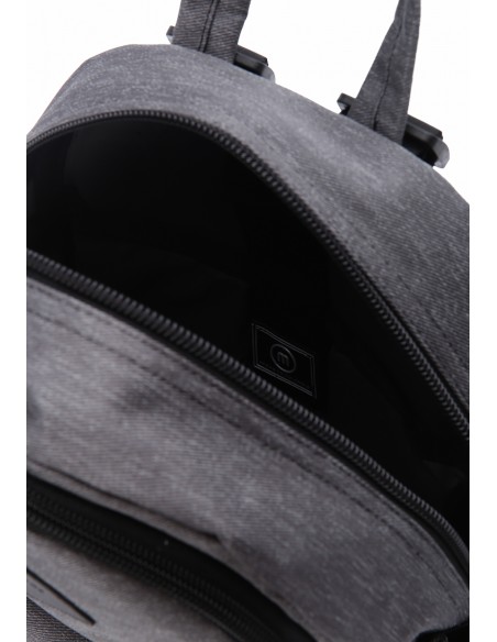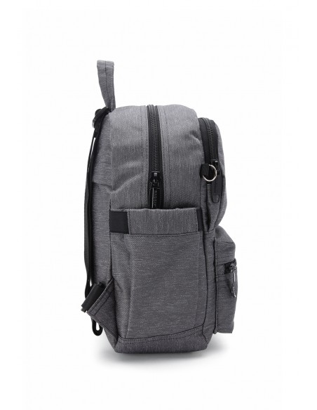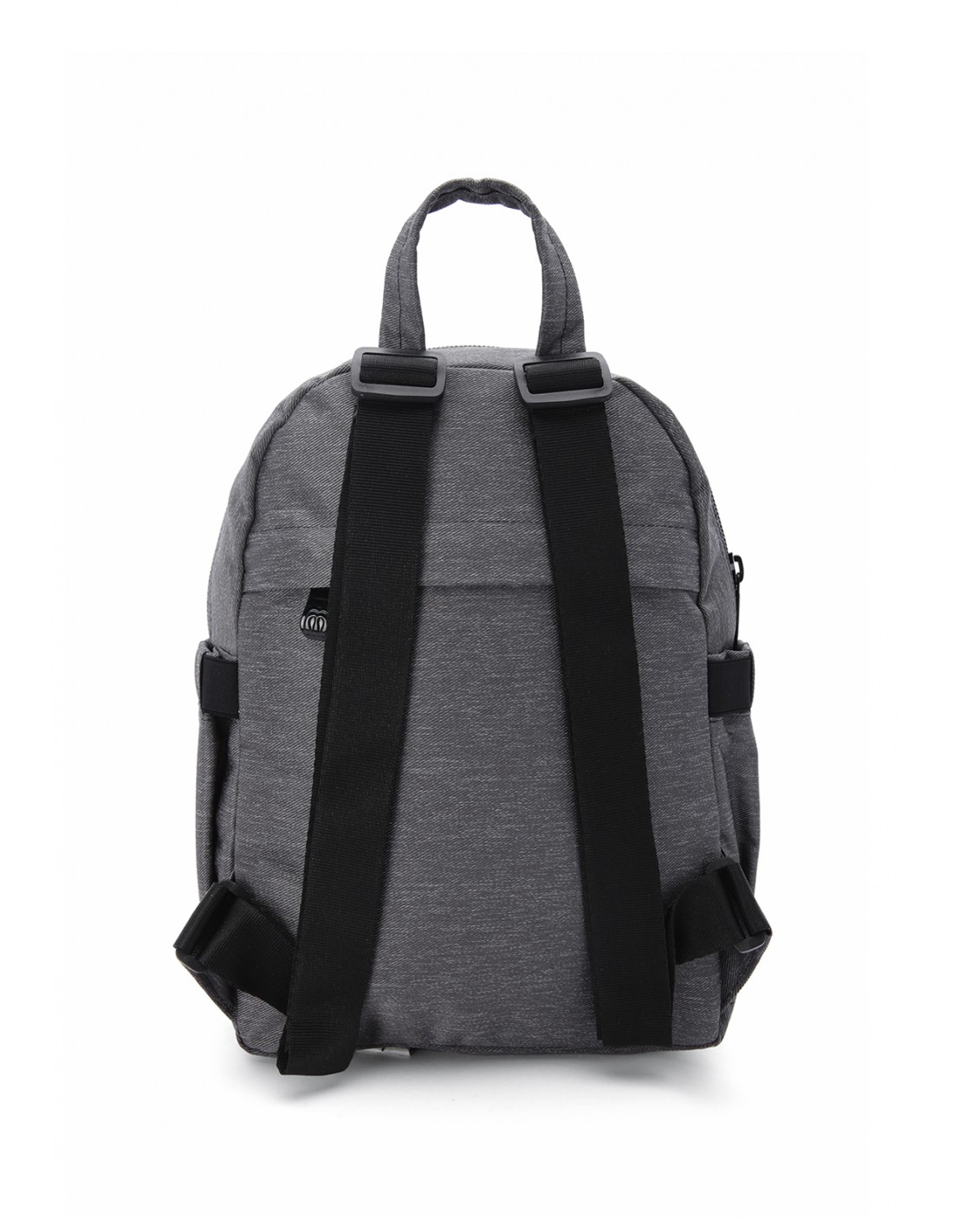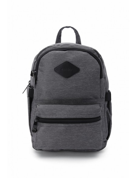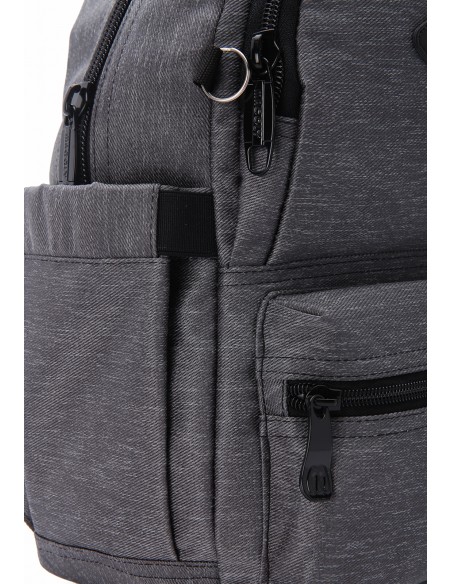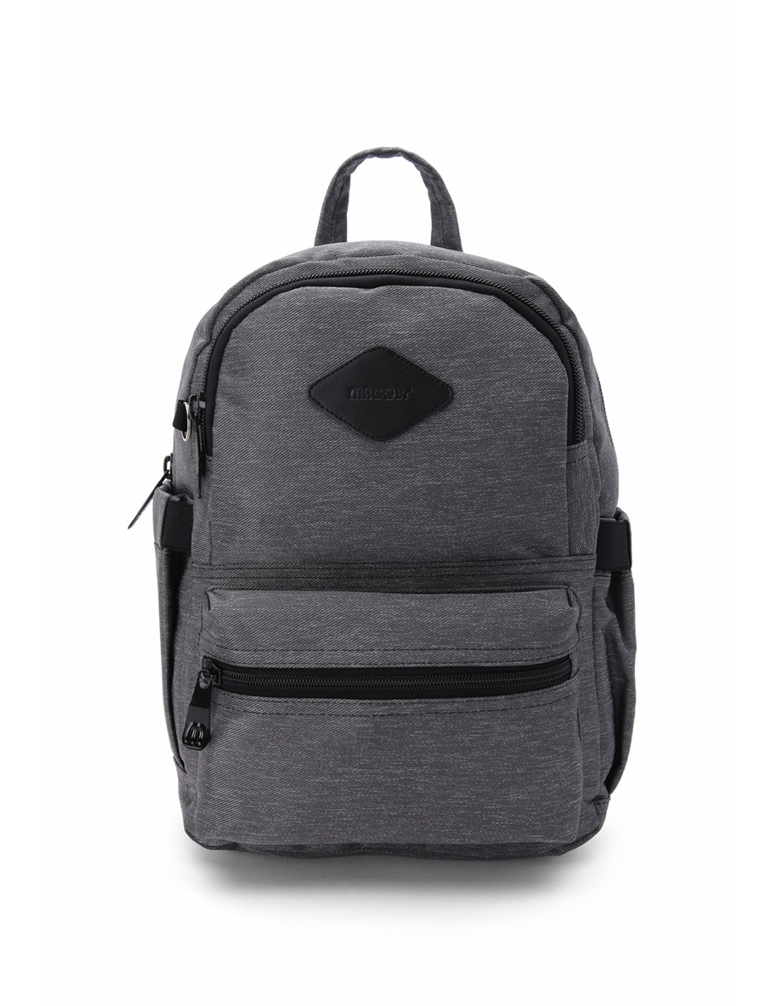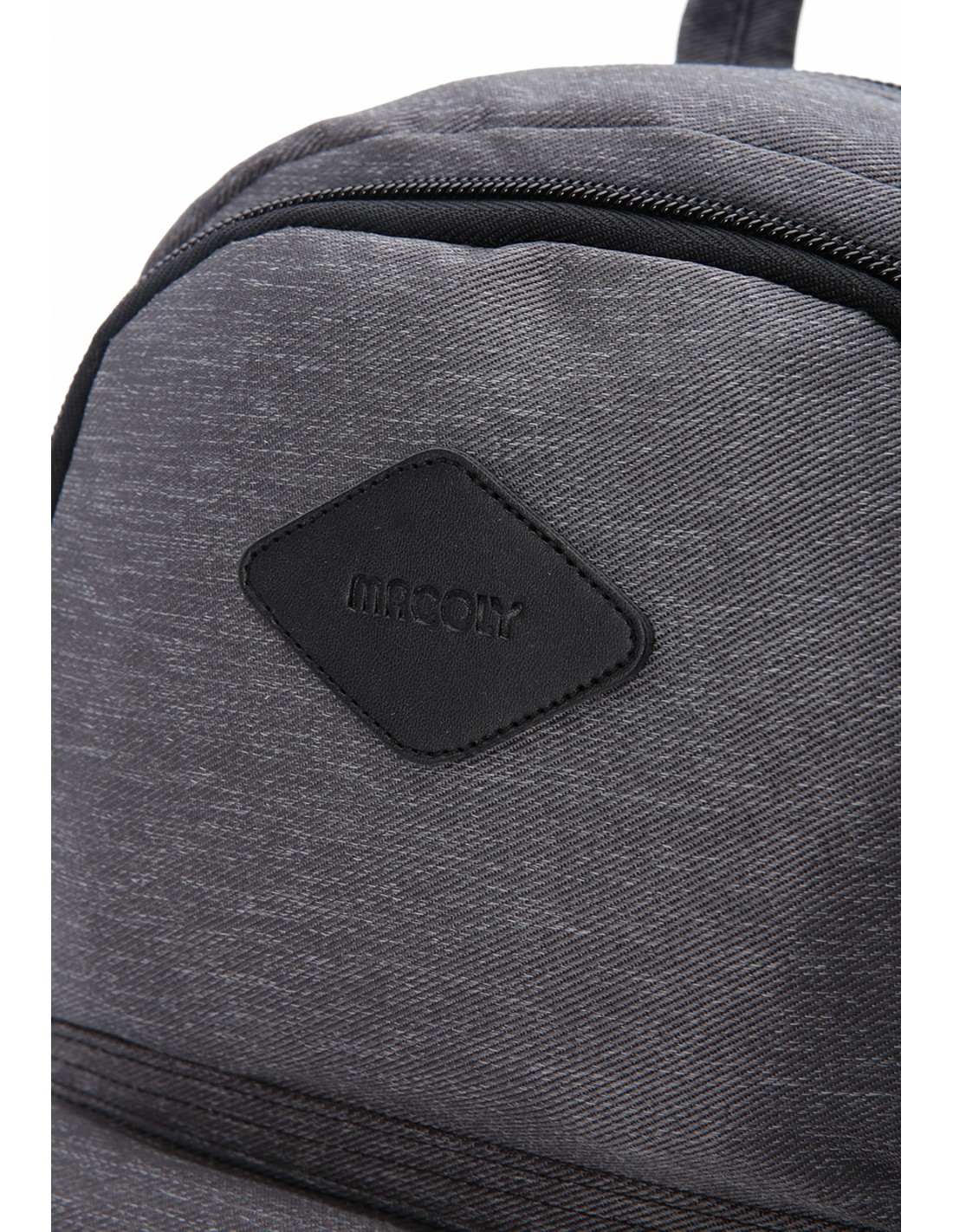 Morral MACOLY, elaborado en lona semi impermeable, diseño casual. Detalles alusivos a la marca y finas costuras visibles. Cuenta con un compartimento interno amplio, con bolsillo interno y solapa. En el frente cuenta con dos bolsillos frontales con cremallera. Tiene un bolsillo trasero con cremallera y bolsillos laterales en lona. Tiene espaldar acochado y cargaderas de morral ajustables.