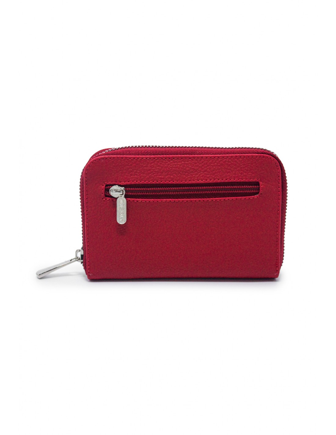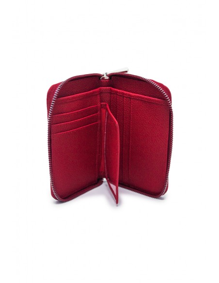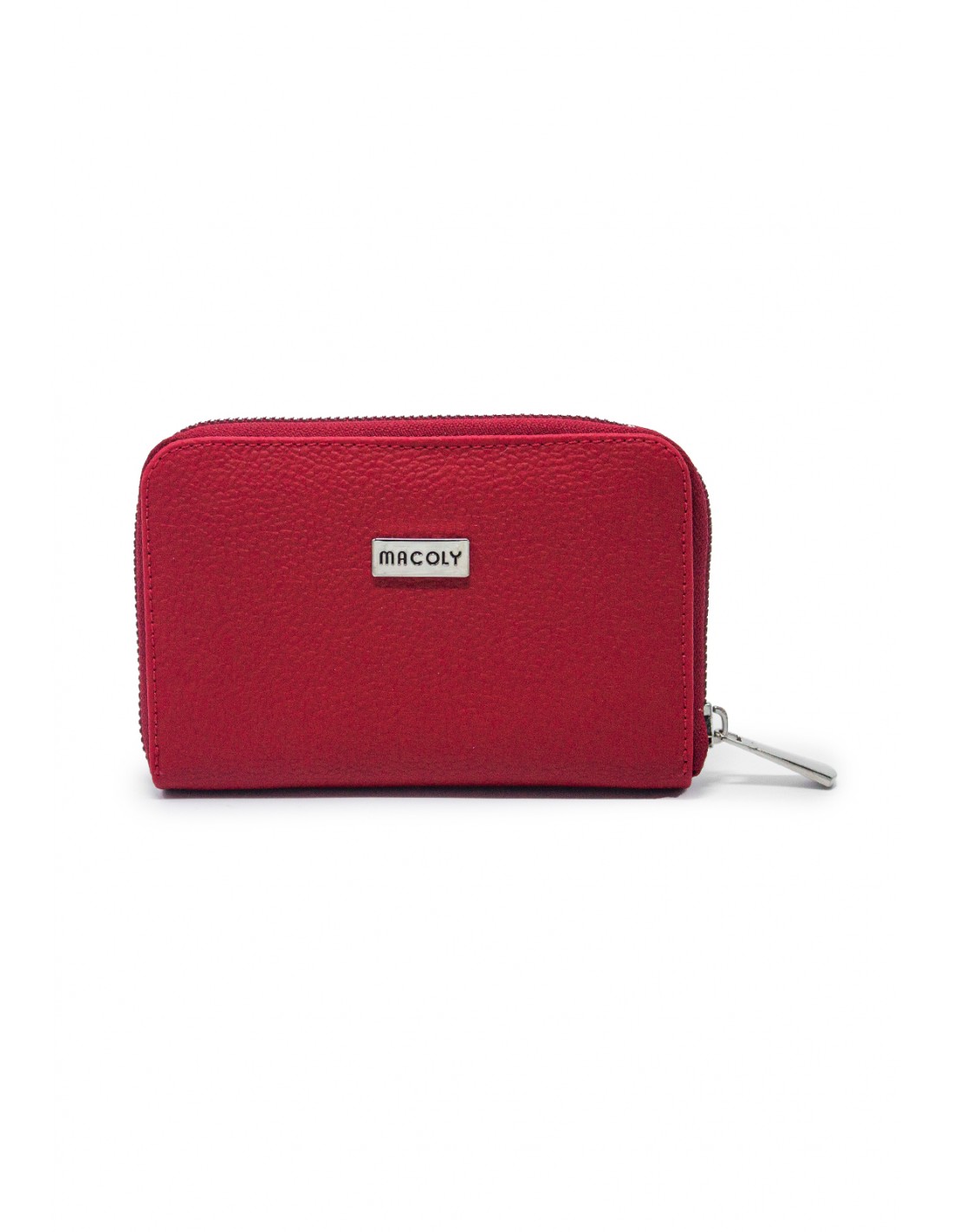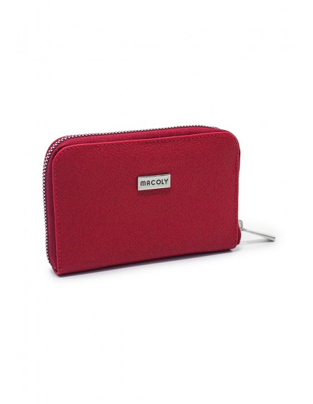 Billetera mediana MACOLY. Está elaborada en material sintético PVC, diseño casual con textura. Detalles alusivos a la marca y finas costuras visibles. Tiene compartimientos internos para tarjetas y/o documentos, tiene monedero con cremallera y compartimiento con solapa. tiene cierre con cremallera.