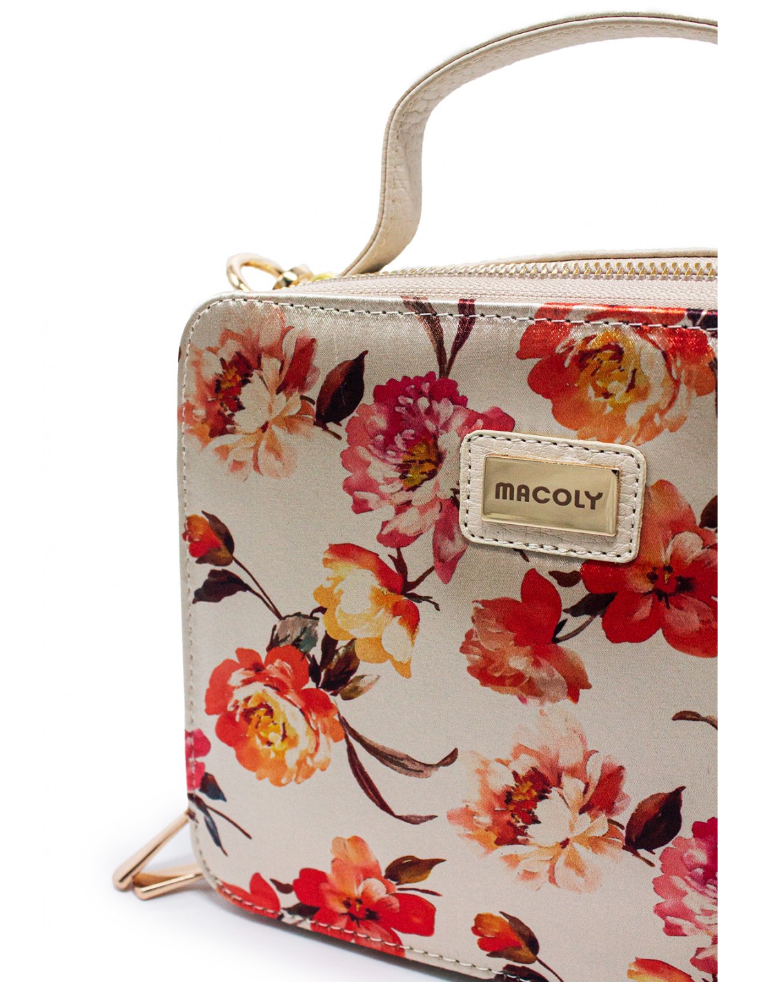 Cartera manos libres MACOLY, Está elaborado en sintético PVC, diseño casual con textura. Detalles alusivos a la marca y finas costuras visibles. Es un bolso rígido, tiene compartimiento con cremallera, cierre interno con cremallera, manija de mano y correa manos libres.