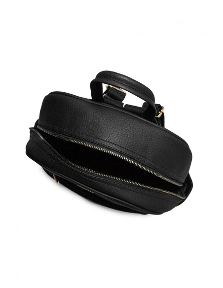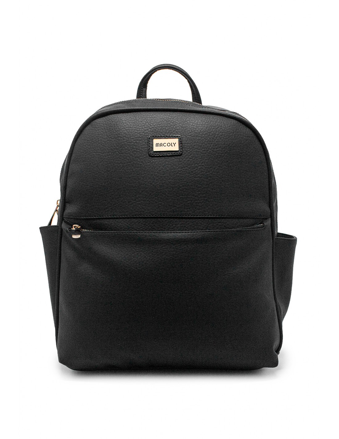Morral mediano MACOLY, elaborado en sintético (pvc), diseño casual con textura. Detalles alusivos a la marca y finas costuras visibles. Tiene compartimiento amplio con bolsillo para portatil y bolsillo con cremallera, tiene bolsillo frontal con cierre, bolsillo posterior con cremallera, manija, bolsillos laterales y cargaderas de morral ajustables.