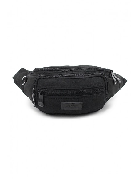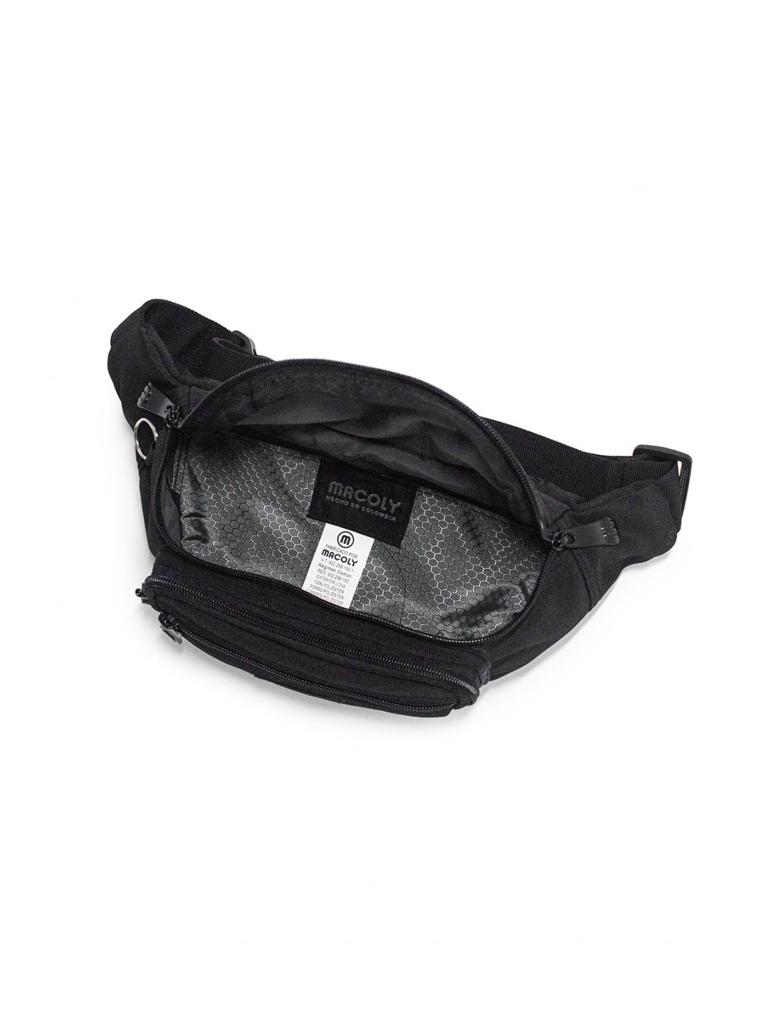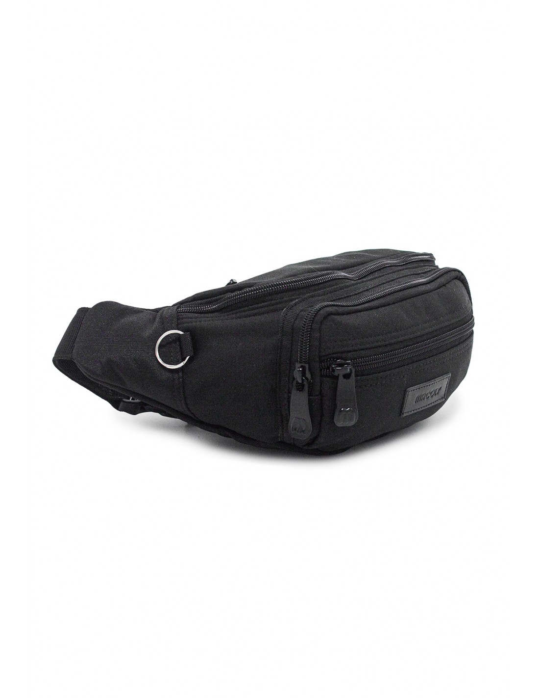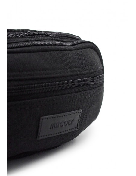 Canguro en lona MACOLY, elaborado en lona semi impermeable, diseño casual. Detalles alusivos a la marca y finas costuras visibles. Tiene un compartimiento principal con una solapa interna, tiene 2 bolsillos adicionales en el frente con cremallera. Cuenta con un bolsillo posterior con cremallera y tiene una correa manos libres graduable de 66 cm
