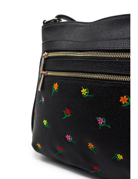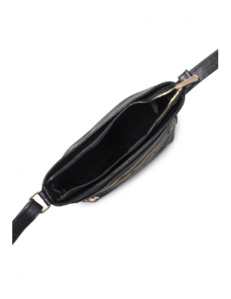 Bolso Manos Libres Macoly M820 cuero negro bordado