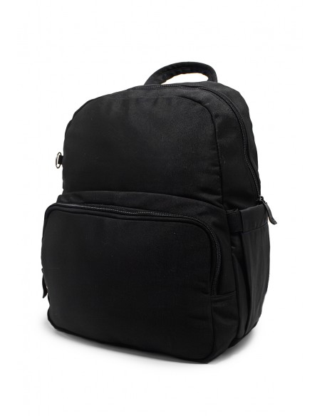 Morral 311 MACOLY, elaborado en lona semi impermeable, diseño casual. Detalles alusivos a la marca y finas costuras visibles. Cuenta con un compartimiento amplio con espacio para portátil de maximo 14 púlgadas y dos bolsillos internos. Tiene bolsillo posterior con cremallera y bolsillo frontal con cremallera. Tiene bolsillos laterales en lona, manija y cargaderas de morral ajustables con espaldar acolchado.