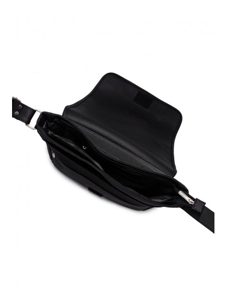 Papelera manos libres Macoly. Elaborado en lona PVC, diseño casual con textura grabada.Detalles alusivos a la marca y finas costuras visibles. Tiene compartimiento amplio con bolsillo interno. Cuenta en el frente con solapa y organizadores. En la parte posterior cuenta con bolsillo con cremallera. Tiene tapa con broche y correa manos libres ajustable.