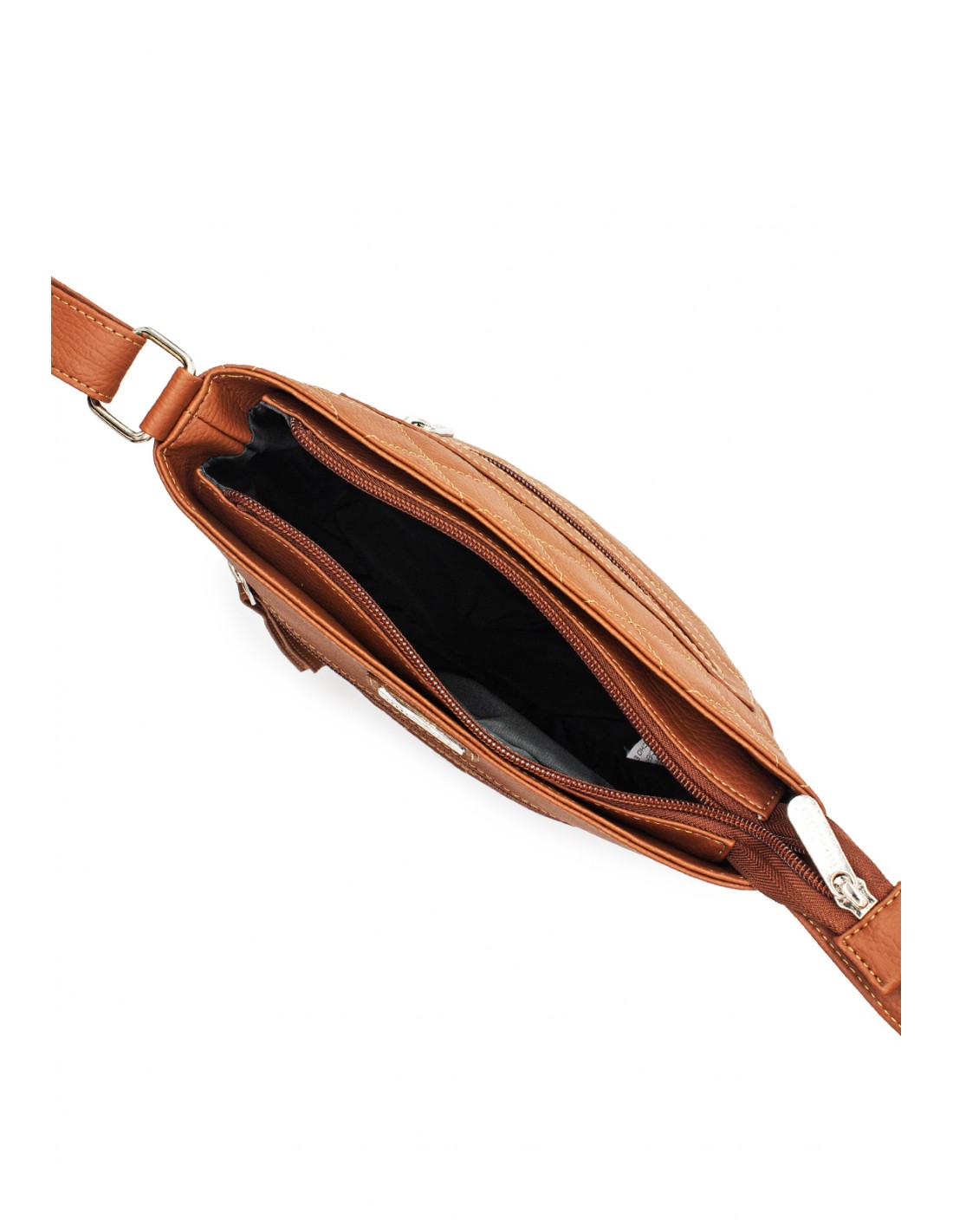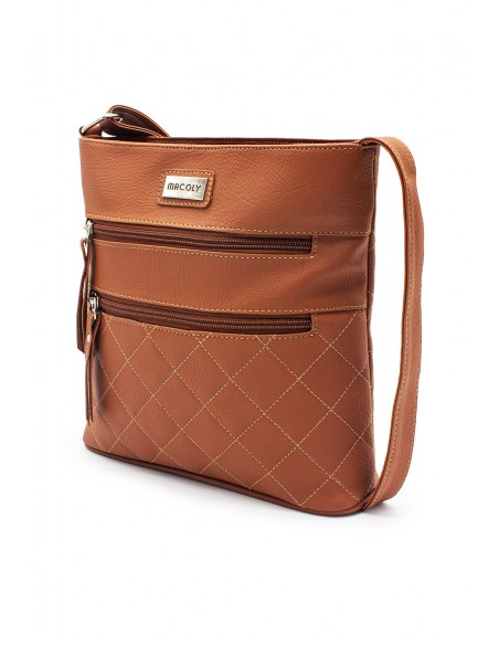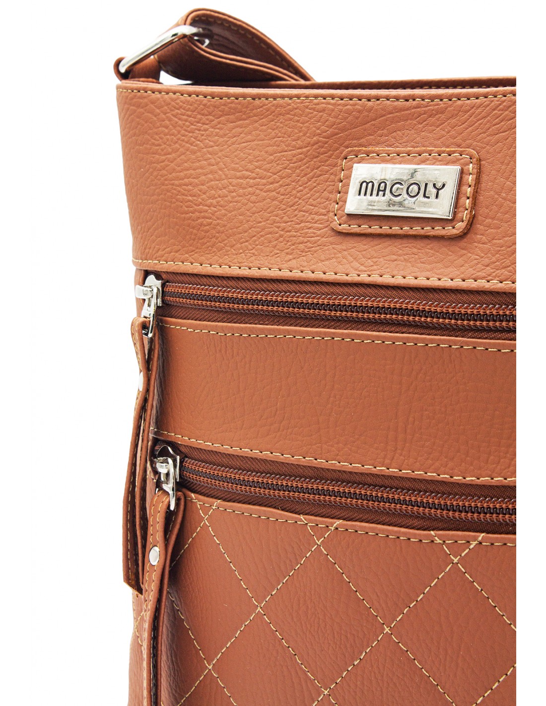 Cartera manos libres MACOLY, elaborado en sintético PVC diseño casual con textura grabada. Detalles alusivos a la marca y finas costuras visibles. tiene compartimiento con bolsillo interno con cremallera, bolsillo posterior y dos bolsillos frontales con cremallera y correa manos libres.