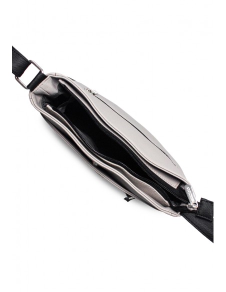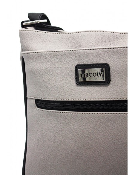Bolso manos libres Macoly. Elaborado en lona PVC, diseño casual con textura grabada. Detalles alusivos a la marca y finas costuras visibles. Tiene compartimiento amplio con bolsillo con cremallera. Cuenta con bolsillo con broche y bolsillo frontal con cremallera y logo perforado de la marca. Tiene bolsillo posterior con cremallera. Cuenta con correa manos libres graduable.