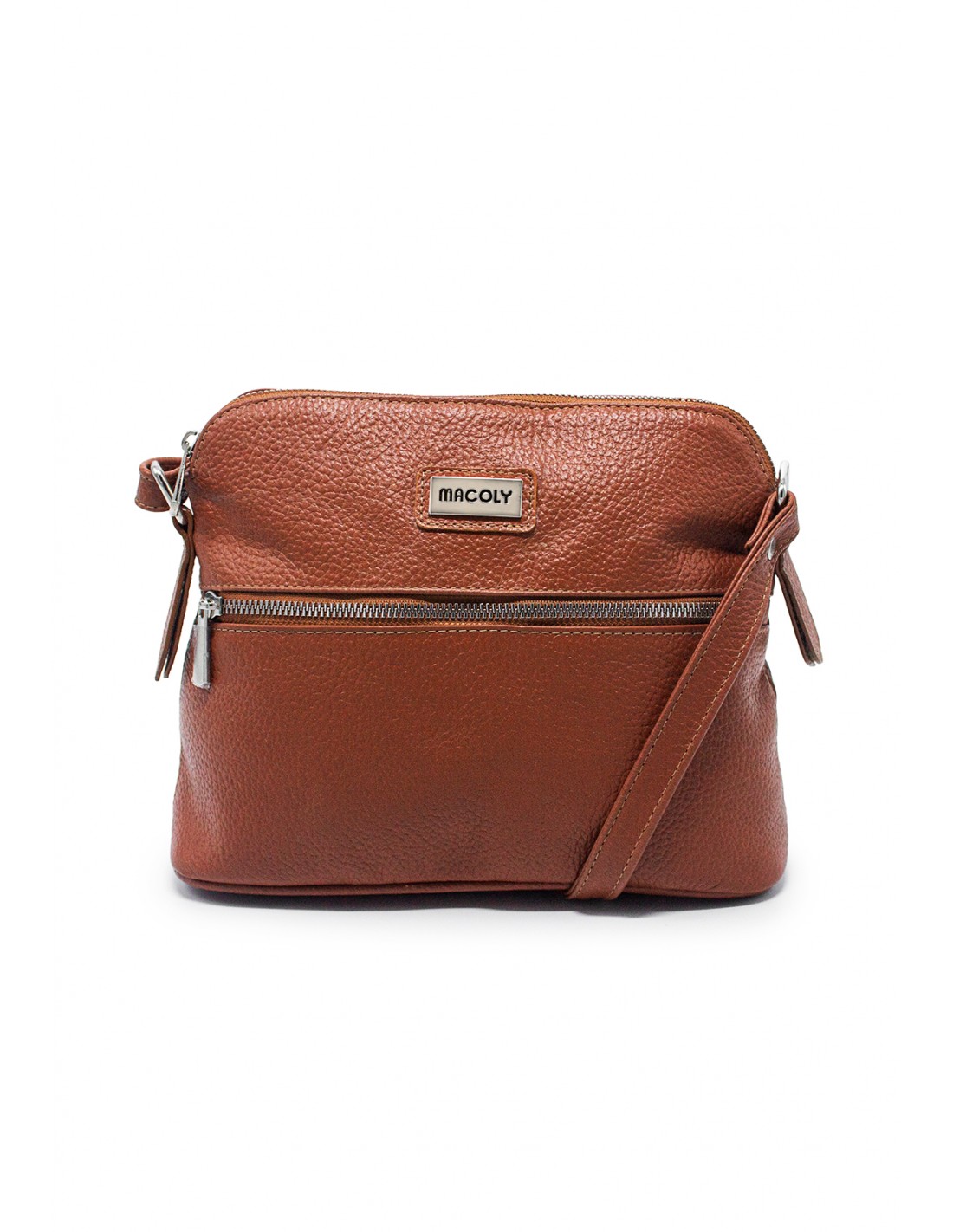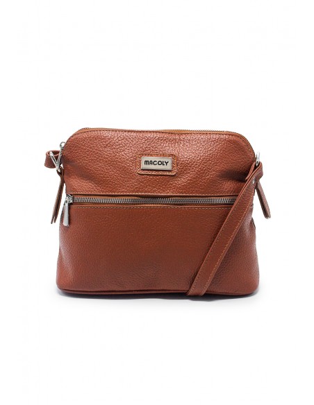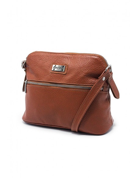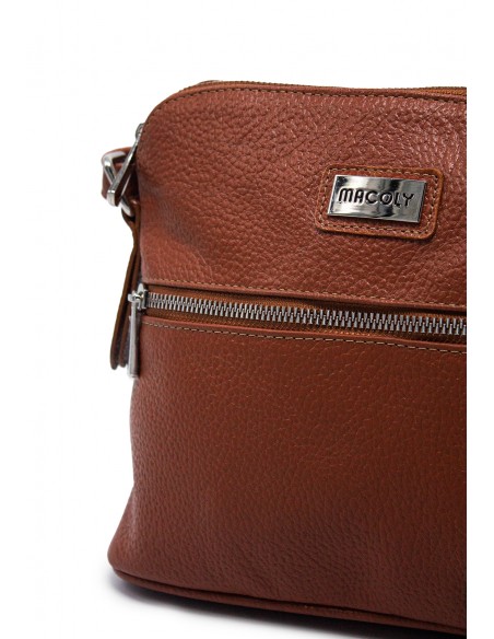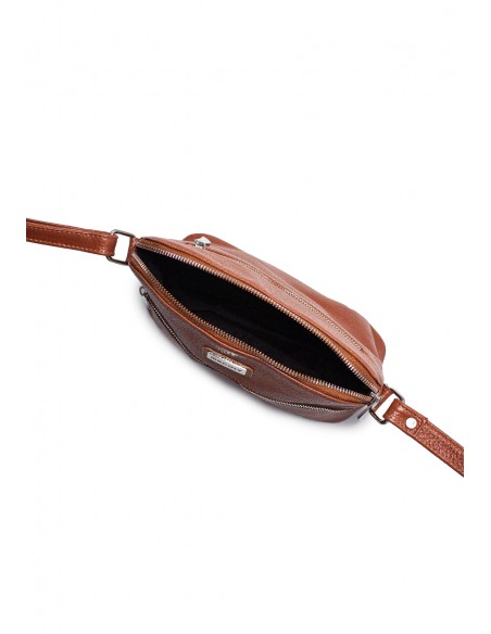 Bolso Manos Libres negro 789, elaborado en 100% cuero vacuno, diseño casual con textura grabada. Detalles alusivos a la marca y finas costuras visibles. Tiene compartimiento, bolsillo interno, bolsillo posterior con cremallera, bolsillo frontal con adorno y correa manos libres.