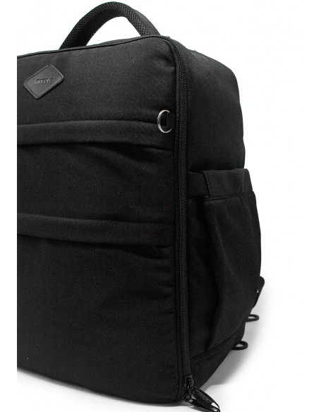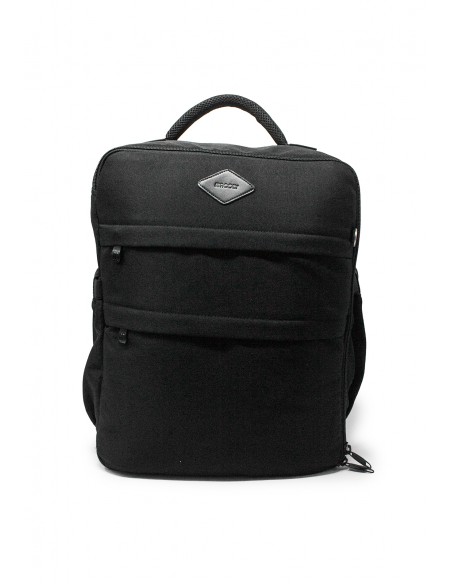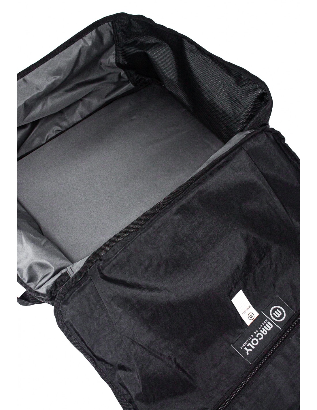 Morral 309 lona MACOLY, elaborado en lona semi impermeable, diseño casual. Detalles alusivos a la marca y finas costuras visibles. Morral con compartimiento amplio con bolsillo interno que tiene apertura completa tipo maleta de viaje, En el interior, sobre la tapa tiene bolsillo con cremallera, bolsillo con resorte y bolsillos auxiliares. En el frente tiene dos bolsillos, cuenta con espaldar acolchado y tiene pasador para manijas de maleta de ruedas, tiene 2 bolsillos laterales en lona, manija y cargaderas acolchadas ajustables. Es apto para usar como artículo personal de aerolínea, sin embargo, te recomendamos comparar las medidas con cada aerolinea ya que algunas manejan diferentes medidas.