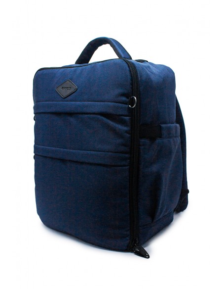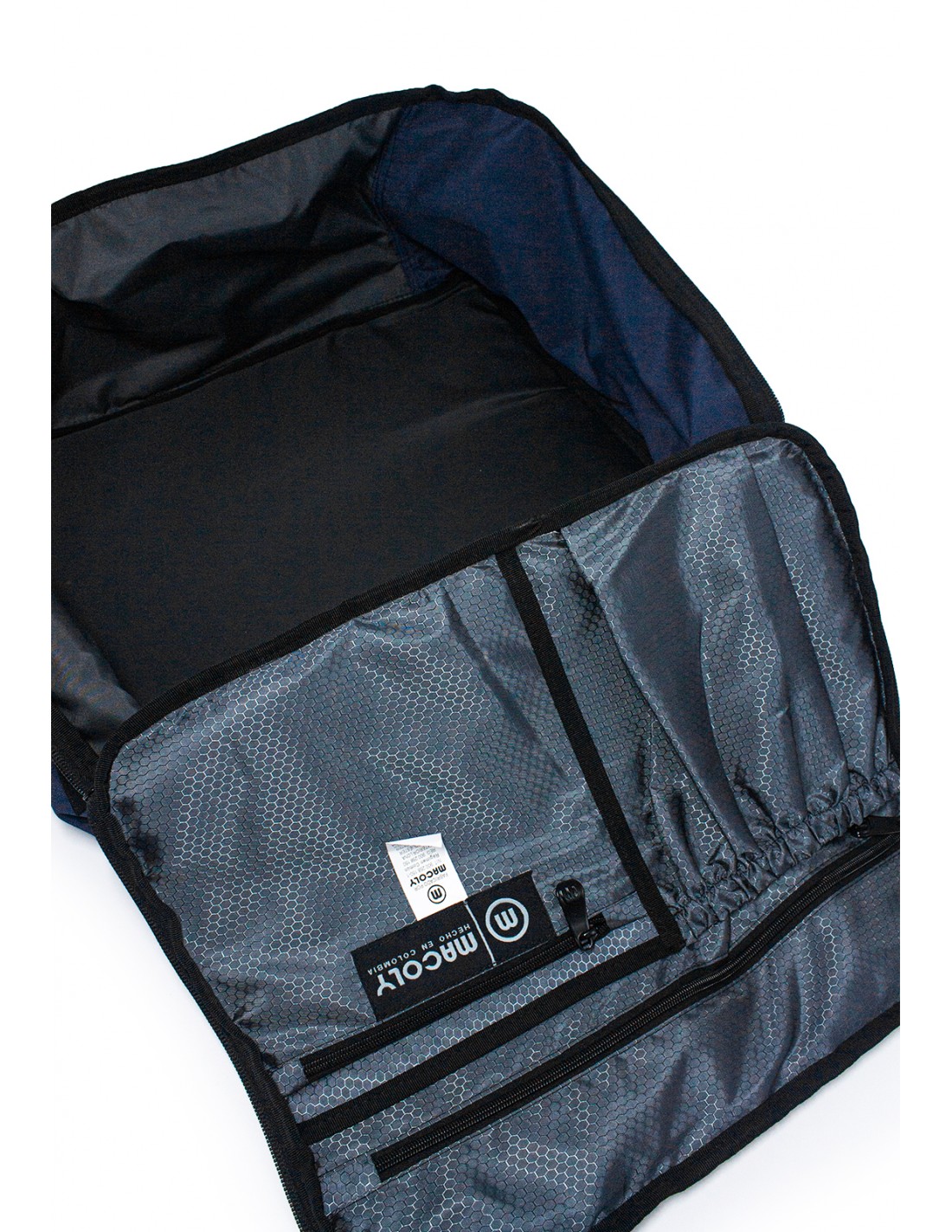 Morral 309 lona MACOLY, elaborado en lona semi impermeable, diseño casual. Detalles alusivos a la marca y finas costuras visibles. Morral con compartimiento amplio con bolsillo interno que tiene apertura completa tipo maleta de viaje, En el interior, sobre la tapa tiene bolsillo con cremallera, bolsillo con resorte y bolsillos auxiliares. En el frente tiene dos bolsillos, cuenta con espaldar acolchado y tiene pasador para manijas de maleta de ruedas, tiene 2 bolsillos laterales en lona, manija y cargaderas acolchadas ajustables. Es apto para usar como artículo personal de aerolínea, sin embargo, te recomendamos comparar las medidas con cada aerolinea ya que algunas manejan diferentes medidas.